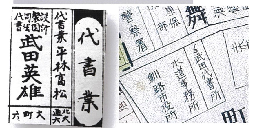 - 左:昭和4年 釧路市大町に開業(代書業公告名簿より)